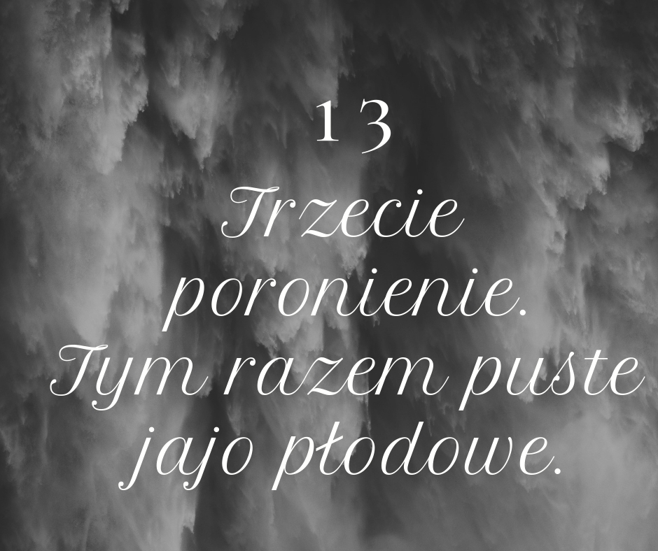 Zapytała jak się czuję, czy coś mi dolega. Powiedziałam o wszystkim, co się wydarzyło od naszego ostatniego spotkania, pokazałam wyniki badań. Bez mrugnięcia powieki przekazałam jej wiadomość o tym, że jestem w 50 dniu cyklu i że to najprawdopodobniej koniec skupiania się na ciąży a początek kierowania uwag ku wczesnej menopauzie.